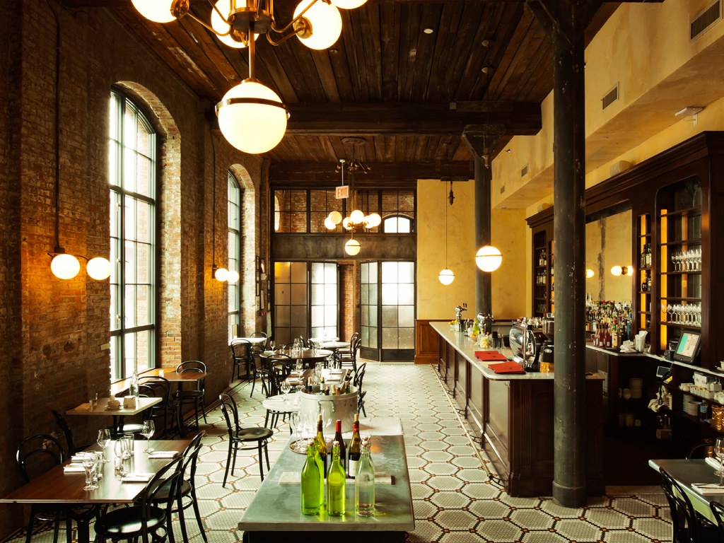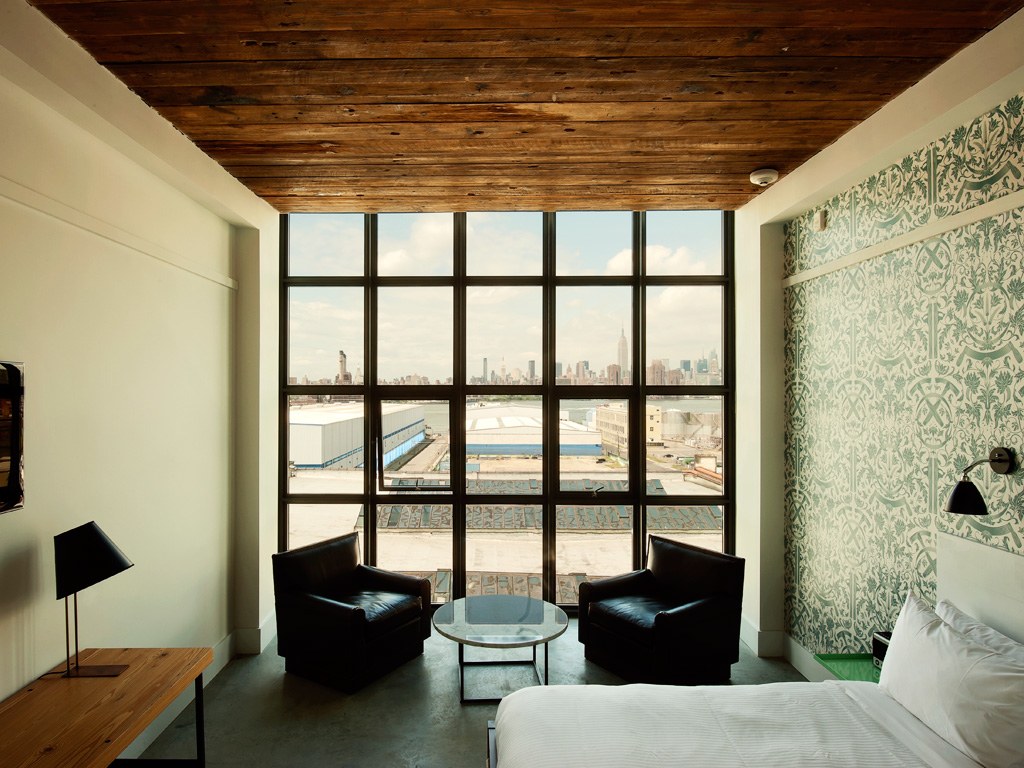 Housed in a converted 100-year old factory, the 70-room Wythe Hotel is located on the Brooklyn waterfront. It’s industrial character has been preserved and some rooms still showcase exposed brick walls.All rooms boast 13-foot high, original timber ceilings, windows and heated concrete floors. Some rooms offers a view of the New York City skyline while others offers guests a peek into the Brooklyn and Williamsburg neighborhoods. Reynard is the hotel’s ground floor restaurant, and Lemon’s is the hotel’s bar located on the 6th floor. Lemon’s offers small plates while The Reynard serves breakfast, lunch and dinner consisting of American eats. Locally sourced ingredients are used for the meals. A private dining room is also available.