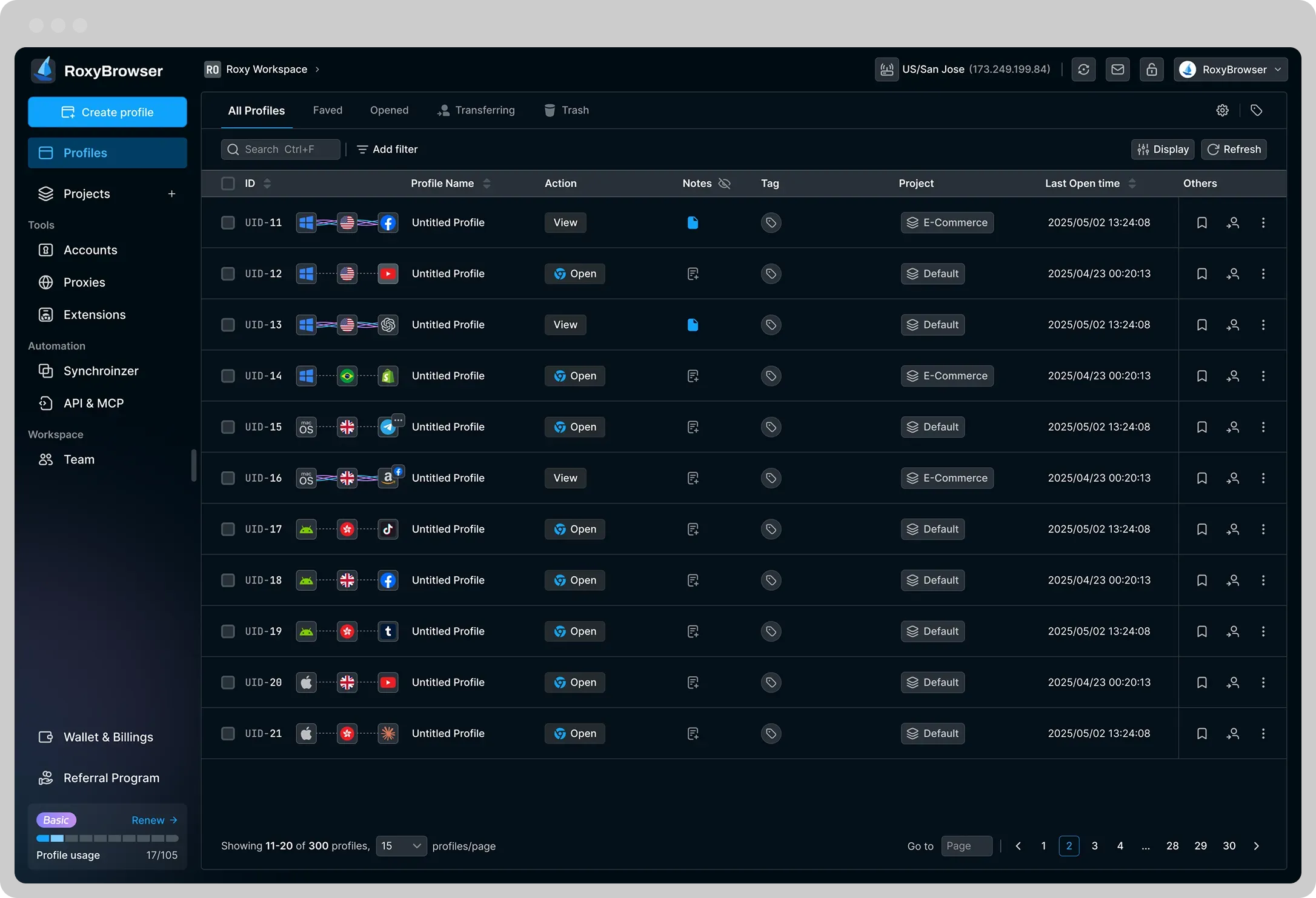 下载 RoxyBrowser,一键屏蔽 WebRTC,生成独立设备指纹。